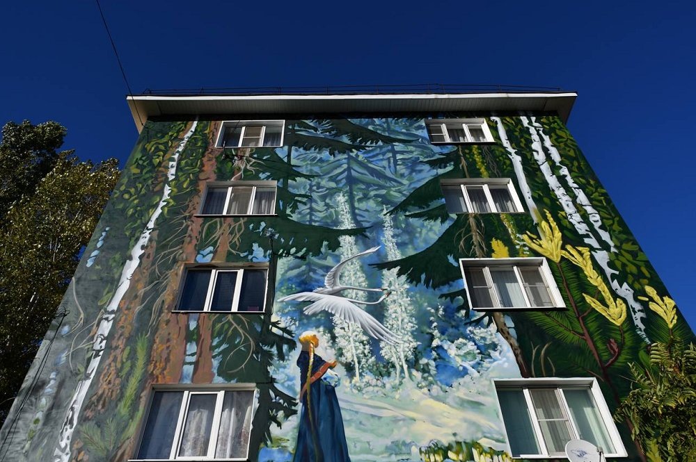Новый мурал появился на торце дома на улице Пролетарской в Майкопе