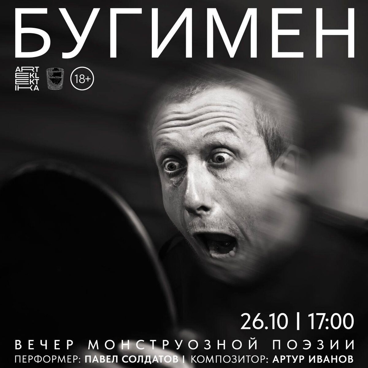 «Бугимен» | вечер монструозной поэзии 🗓️ 26 октября, 17.00 📍Бар Caballitos, Дворцовая 8 Накануне самого мрачного праздника в году Павел Солдатов устроит иммерсивную перформанс-читку самых жутких стихотворений мексиканских, русских, американских и французских поэтов (Маргарита Пас Паредес, Эдгар По, Шарль Бодлер, Говард Ф. Лавкрафт, Стивен Кинг, Осип Мандельштам, Александр Блок, Фёдор Сологуб, Дмитрий Мережковский, Зинаида Гиппиус и др.) под нойз/шугейз музыку Артура Иванова | 18+ Регистрация (всего 40 мест): https://vk.com/topic-233427665_53893384 🏷Вход — свободные взносы! #26октября25@culturnik