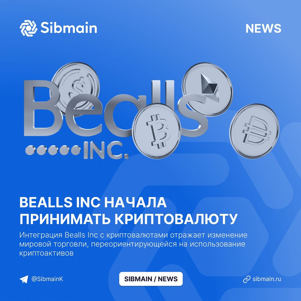 📰📰📰📰 ➡️Bealls Inc начала принимать криптовалюту Сеть магазинов Bealls, один из крупнейших розничных ритейлеров США, начала принимать оплату в криптовалюте. Оплата возможна: ⏺Биткоином; ⏺Эфириумом; ⏺Стейблкоинами 📍Интеграция Bealls Inc с криптовалютами отражает изменение мировой торговли, переориентирующейся на использование криптоактивов