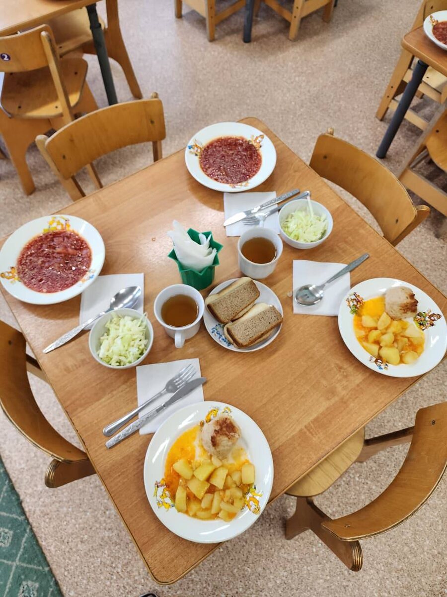 ОБЕД В ДОШКОЛЬНЫХ ОТДЕЛЕНИЯХ 📌Обед — это важная часть дня, когда дети не только утоляют голод, но и получают заряд энергии для игр и занятий. Сегодня мы хотим рассказать вам, каким вкусным и сбалансированным был обед у наших воспитанников! ✨Сегодня ребятам подавали на обед витаминный салат из свежей капусты, сытный борщ со сметаной, нежные рубленые куриные биточки и полезное овощное рагу. На десерт был свежий фруктовый сок, а к столу, как всегда, подавали душистый пшеничный и ржано-пшеничный хлеб. ✅Мы уверены, что правильное питание — основа крепкого здоровья и гармоничного развития. Пусть наши малыши растут сильными, активными и счастливыми! #ДОНМ #Школа1900 #НашеПитание