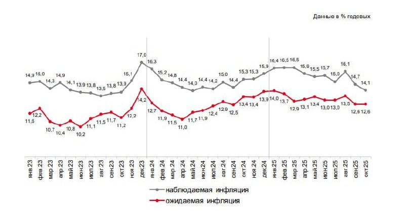 ️ЦБ: инфляционные ожидания населения в октябре не изменились ️ЦБ: инфляционные ожидания населения в октябре не изменились В октябре инфляционные ожидания населения остались на уровне 12,6%, как и в сентябре. Это следует из опроса «инФОМ», проведенного по заказу Банка России с 6 по 16 октября 2025 года. Оценка наблюдаемой инфляции при этом снизилась: с 14,7% в сентябре до 14,1% в октябре. Данные: Банк России Подписаться на «Сам ты инвестор!» #фондовый_рынок #котировки #валюта #биржа Сообщение появились сначала на . #брокер #краудфандинг #аналитика #техническийанализ #андеррайтинг https://blog.neotorg-line.ru/%ef%b8%8fcb-infljacionnye-ozhidanija-naselenija-v-oktjabre-ne-izmenilis/19233/