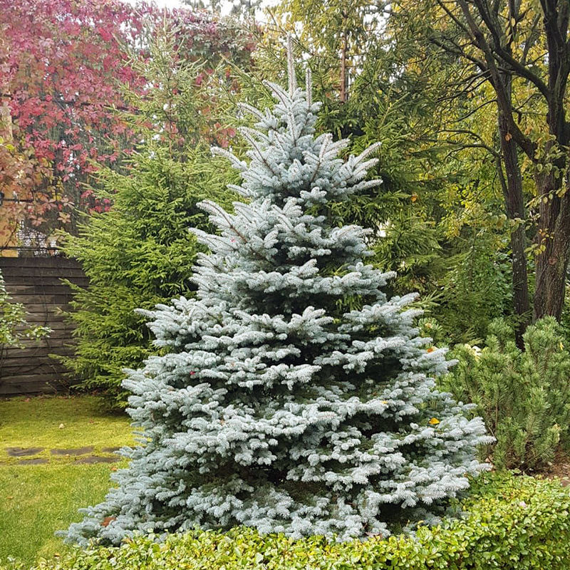 Ель «Фат Альберт» представляет собой молодой сорт хвойного дерева, открытый в 70-е годы XX века. Отличается ярко выраженным голубым цветом хвои и правильными пропорциями, благодаря чему пользуется большой популярностью среди ландшафтных дизайнеров и садоводов. Крона имеет конусовидную форму, ветви располагаются горизонтально относительно ствола, создавая чёткую структуру дерева. Длина острых иголок составляет около 2-3 сантиметров, а молодые шишки окрашены в пурпурный оттенок, приобретая позднее бурый цвет. Рост и размеры: Дерево активно развивается, прибавляя ежегодно примерно 20 см высоты. Уже к десятилетнему возрасту достигает трехметровой высоты и полутораметрового диаметра. Полностью сформировавшиеся экземпляры могут достигать десяти метров высотой и трёх-четырех метров в ширину. Особенности ухода: Молодые саженцы требуют регулярного полива дважды в сутки теплой водой, желательно дождевать крона вечером. Удобрения применяют исключительно минеральные составы, содержащие азот, фосф