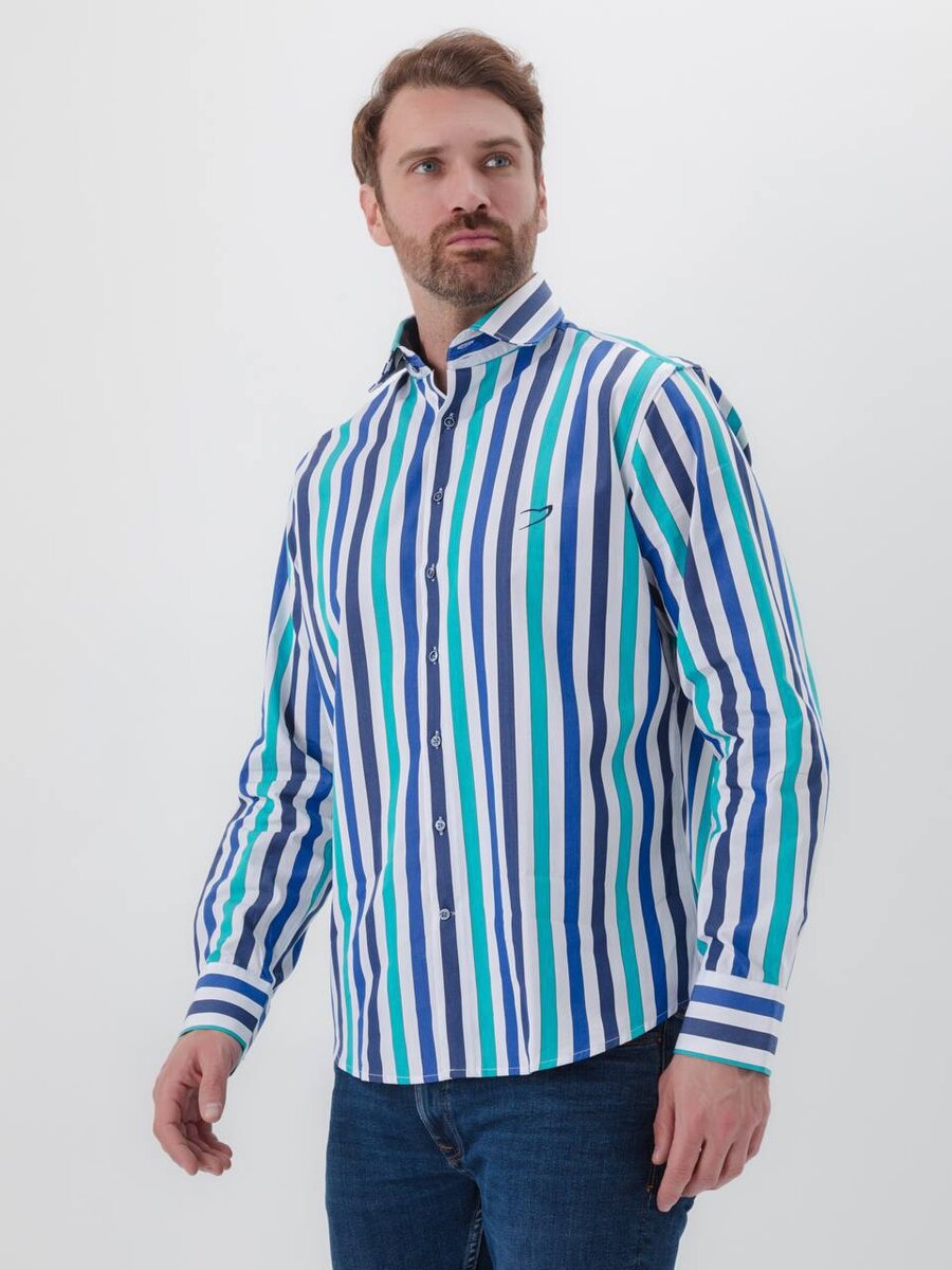 Дизайн рубашки вдохновленный морем, подойдет, как для повседневной носки, так и для торжественных мероприятий. Заказывайте на OZON бирюзовая полоска 1409919065 синяя полоска 1409884531