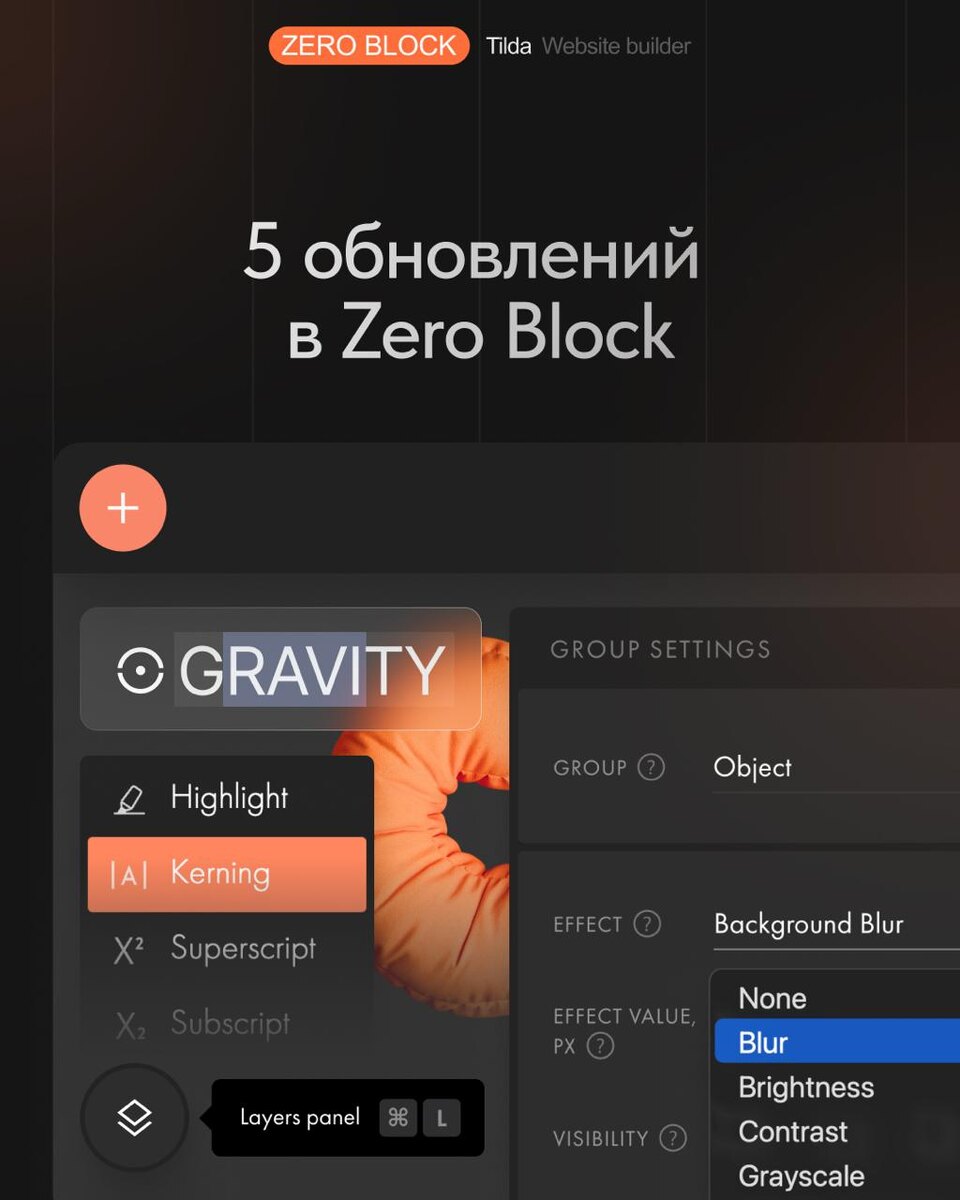 Быстрый переход к векторному редактору и в панель слоёв, эффекты для Object-групп и другое — рассказываем про пять обновлений в Zero Block. Какое обновление ждали больше всего? Напишите в комментариях 👀 #tildaupdates