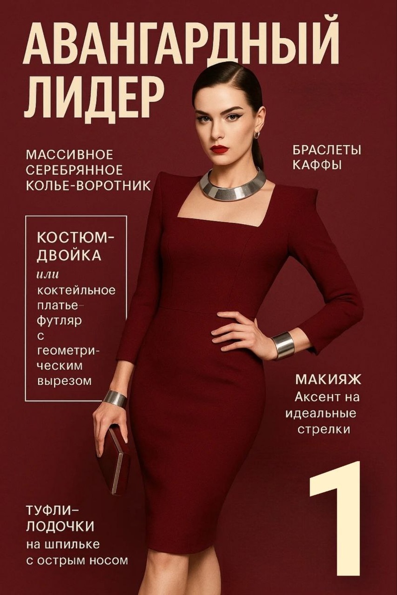 «20'26 | НОВОГОДНИЙ ТОТАЛ ЛУК — ФЭШН БУРГУНДИ» 🔺Архетип «ЕДИНИЦА» (Лидер) Характер: Амбициозный, независимый, смелый. Вы не ждете чудес, вы их создаете. Лук: «Авангардный лидер». Ваш образ должен быть дерзким и бескомпромиссным. База: Костюм-двойка с зауженными брюками и пиджаком с острыми плечами или коктейльное платье-футляр с геометрическим вырезом. Аксессуары: Массивное серебряное колье-воротник, браслеты-каффы, клатч с металлической вставкой, туфли-лодочки на шпильке с острым носом. Макияж: Акцент на идеальные стрелки и алые губы, чтобы ваш ФЭШН БУРГУНДИ заиграл новыми красками. #2026 #фэшнбургунди #тоталлук #новогоднийнаряд #новыйгод #архетипы #нумерология #авангардныйлидер
