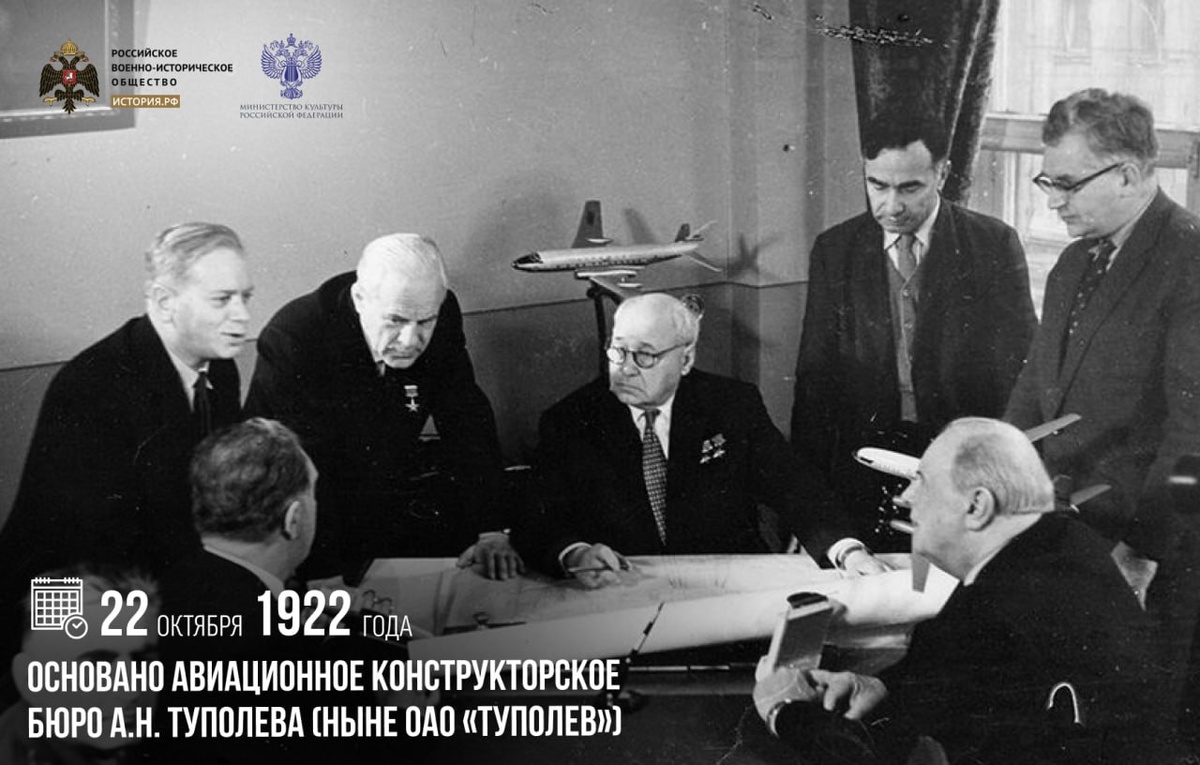 22 октября 1922 года основано авиационное конструкторское бюро А.Н. Туполева (ныне ОАО «Туполев»)