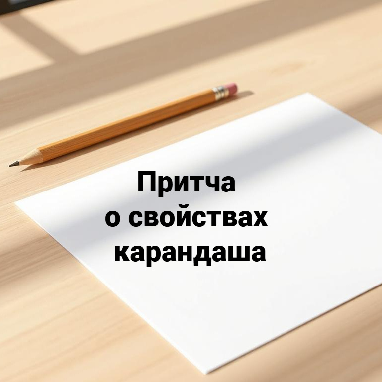 Как-то к мудрецу пришёл юноша и спросил: "Как нужно жить, чтобы прожить свою земную жизнь с пользой и с чистым сердцем предстать перед Богом?" Мудрец протянул молодому человеку простой карандаш с ластиком на конце и сказал: - Для этого надо научиться пяти свойствам карандаша. Первое - осознать, что сам по себе ничего написать или нарисовать не можешь. Но сможешь всё, если доверишься рукам Творца. Второе. Иногда жизнь причиняет нам боль. Но только заточка делает карандаш острым. Третье. Как ластиком можно стереть неверную линию или некрасивый рисунок, так покаянием и исправлением можно очистить лист своей жизни. Четвёртое. В карандаше главное грифель, а не деревянная оболочка. Так и в человеке самое важное - это душа. И, наконец, пятое. Можно всю жизнь без толку провести в красивой коробке, а можно отдать всего себя, чтобы оставить след.