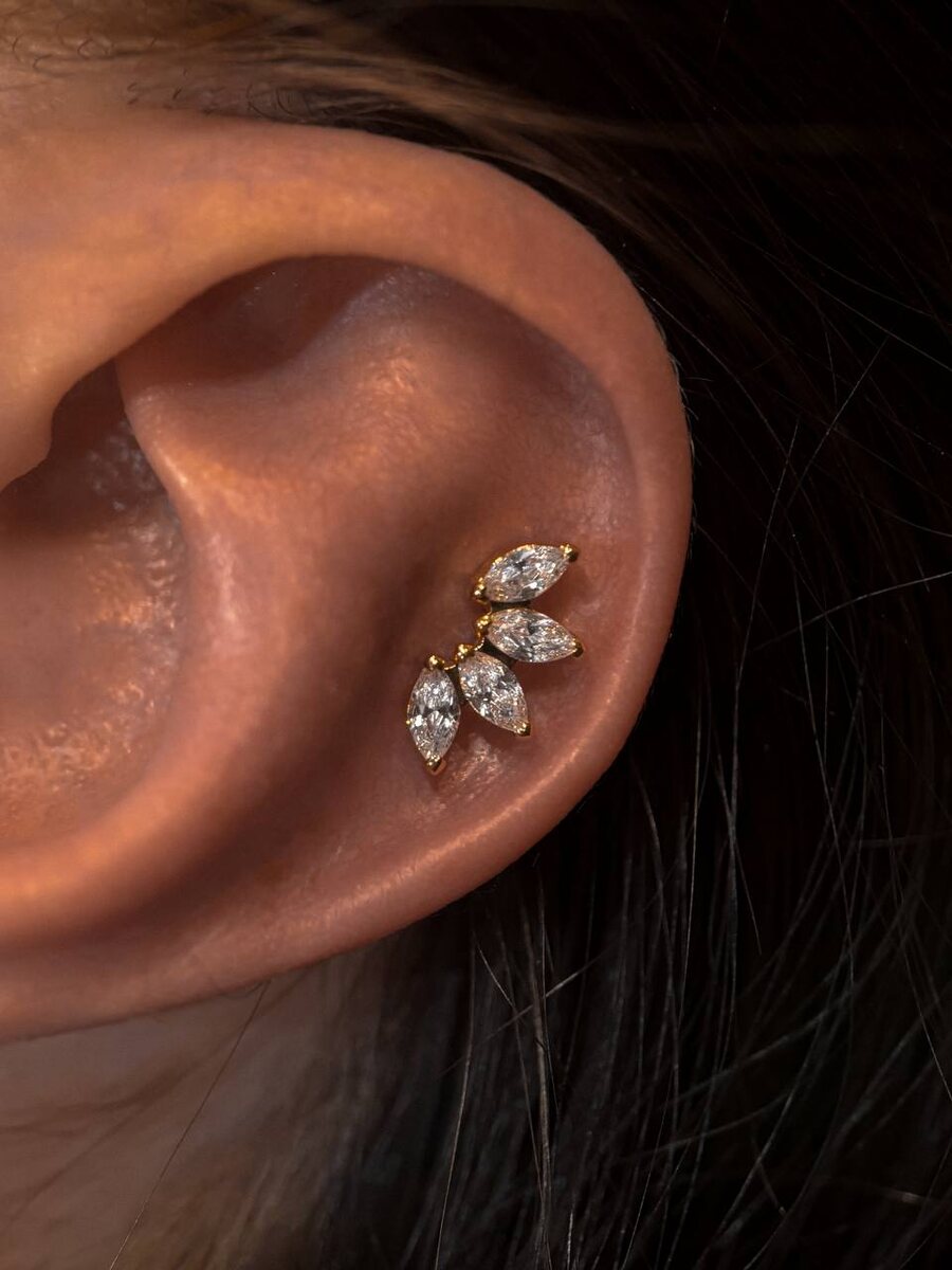 Выполнили прокол Хеликс с украшением Verbena 4K в розовом золоте