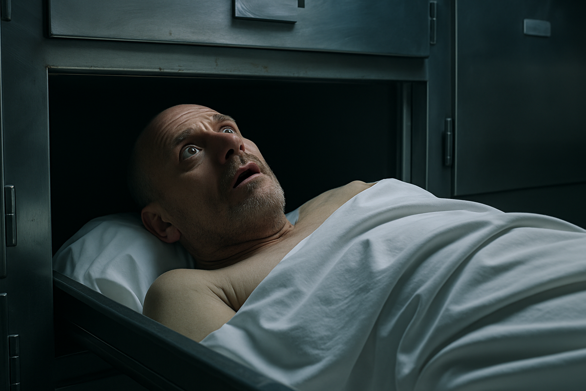 В морговом холодильнике он почувствовал холод металла под спиной и с ужасом осознал: его уже посчитали мёртвым. Но он жив. Это не сценарий хоррор-фильма. Такие случаи действительно зарегистрированы. Людей объявляют умершими по всем правилам, а они... возвращаются. Медицина знает похожий синдром, который называют синдромом Лазаря. Это состояние, когда после полного прекращения реанимации сердце вдруг снова начинает стучать. Но есть и более прозаичная причина: диагностическая ошибка. Когда пульс едва ощущается, дыхание притухает до елезаметного и врач со всей уверенностью ставит диагноз: смерть. Есть несколько причин, по которым человек вдруг "возраждается": Согласно медицинским стандартам, смерть человека можно констатировать только при отсутствии дыхания, сердцебиения и реакции зрачков на свет, а также при подтверждении плоской линии на ЭКГ. Однако практика показывает, что и этого бывает недостаточно, особенно в условиях стресса или нехватки времени. Некоторые исследователи настаивают: