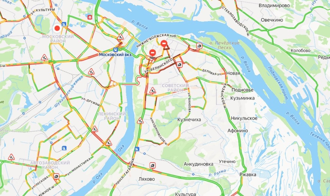 ⛔ Вечером 22 октября Нижний Новгород сковали пробки, которые достигли девяти баллов