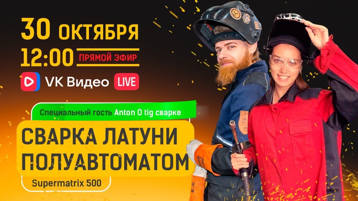 🔥СВАРКА ЛАТУНИ ПОЛУАВТОМАТОМ? Да, это возможно! 🔥 30 октября в 12:00 МСК в официальной группе HUGONG ждем вас на стриме, где подробно об этом поговорим и покажем на практике! Наши эксперты совместно с Антоном - автором группы ВК «Anton О tig сварке» и TG канала «Anton.O.tig.svarke» расскажут теорию и покажут на практике сварку ЛАТУНИ полуавтоматом! 🤯 Что вас ждёт: • Латунь – что это такое? Разбираем состав и особенности сплава • Практика: покажем сварку латуни на полуавтомате Supermatrix 500 • Расскажем о всех нюансах: выбор проволоки, ручная настройка, борьба с пористостью и оксидами • Ответы на ваши вопросы в прямом эфире Не пропустите! Будет жарко! 🔥 #HUGONG #сварка #латунь #полуавтомат #Supermatrix500 #стрим #TIGсварка #сварочноеоборудование #эксперимент