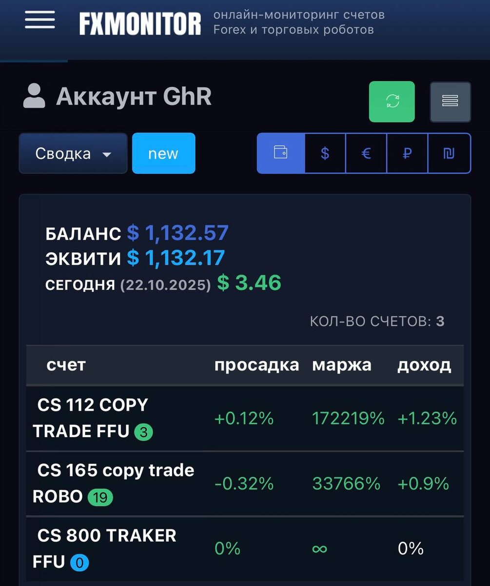 Всем доброй ночи, зафиксирую начало 2.0 , тезисно: 1) пополнился на 1 1 1320$ ,2) 3 счета, 3) выкручиваю минимум риск в торговле