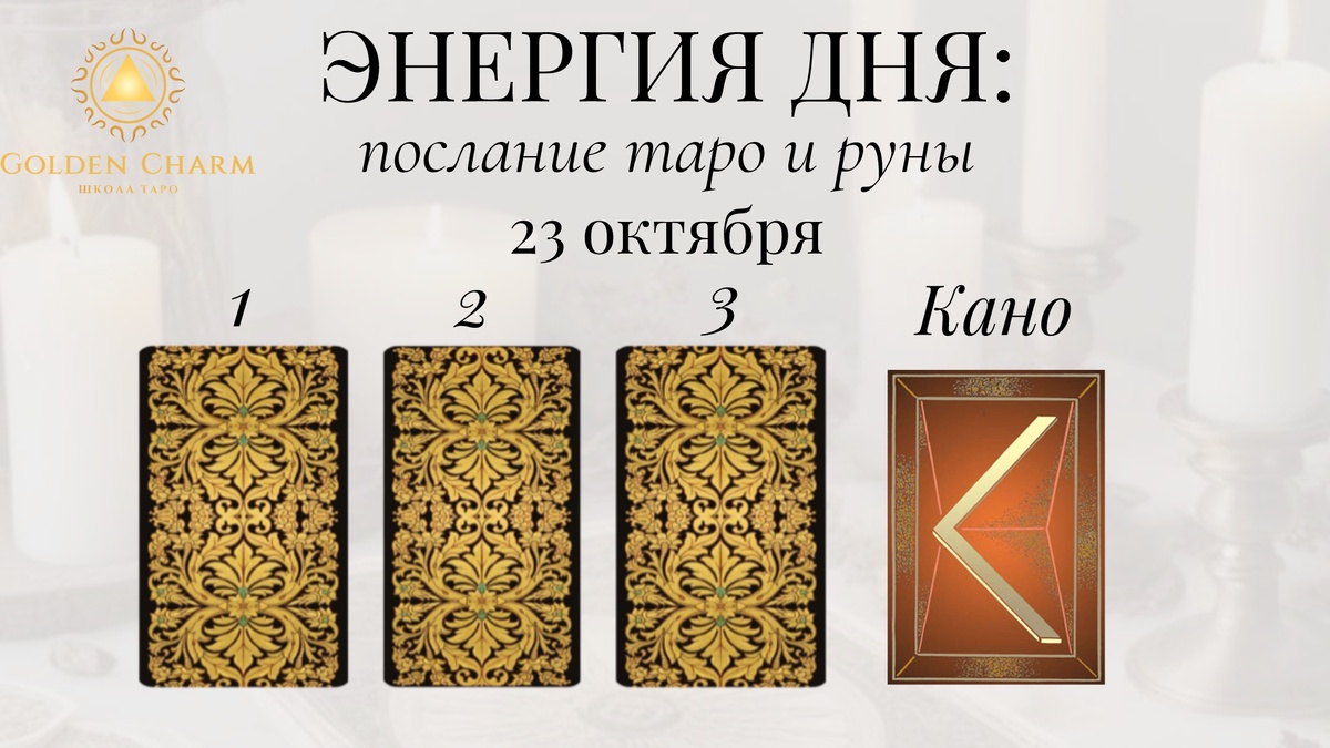 Заказать личный расклад тут✅ Прогноз на 23 октября : что тебя ждёт Приходи на обучение Таро ✅ Выбери карту — 1, 2 или 3 — и узнай, какой путь для тебя: 1. Паж Кубков Этот день наполнит твоё сердце радостью и вдохновением. Возможно появление новых друзей, творческих идей и приятных сюрпризов. Открой своё сердце новым впечатлениям! 2. Влюблённые Время выбора и принятия решений. Сегодня ты можешь столкнуться с необходимостью сделать выбор между двумя вариантами. Прислушайся к своему сердцу и интуиции — они подскажут верный путь. 3. Семёрка Мечей Будь осторожнее с действиями и словами. Этот день может принести испытания и проверки твоей мудрости и выдержке. Прояви терпение и осмотрительность. Руна дня — Кано Это хороший день для творчества, самовыражения и проявления своей индивидуальности. Пусть свет внутри тебя озаряет твой путь. Напиши цифру карты + КАНО в комментариях, чтобы активировать энергию. Хочешь личный расклад? Пиши — посмотрим, что ждёт тебя: Заказать личный расклад