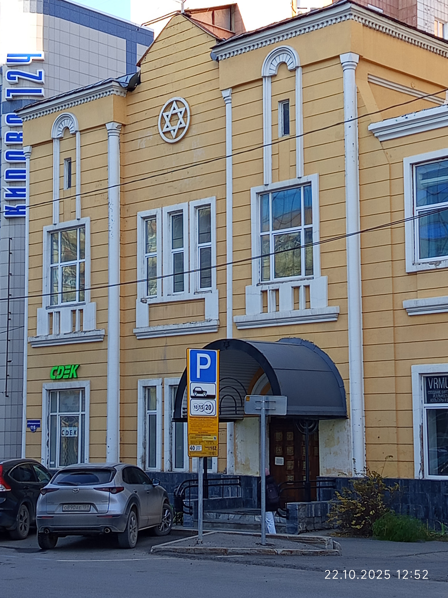 Спроси у любого пермяка - как пройти к православному Храму - подскажут, как пройти к Мечети - большинство отправят на улицу Осинскую, а вот на вопрос с Синагогой ответит не каждый. А ведь вот она - буквально в 2-х кварталах от самых туристических "артерий" города - Компроса и улицы Ленина. Адрес Екатерининская,116. И к тому же ей уже больше ста лет. Верующих значительно потеснили и в здании, на сегодняшний день, чего там только нет. С 1850 здесь уже находился молельный дом еврейской общины. Но благодаря всё новым притокам прихожан: В 1912 г. строительная управа городской управы Перми одобрила проект возведения каменной синагоги на месте деревянного молельного дома. Сохранились два варианта проектов — проект чертёжно-строительного бюро В. Е. Гладких и проект неизвестного авторства. Каменное здание синагоги было возведено в 1913 г. В ноябре 1929 г. синагога была закрыта властями. Здесь некоторое время располагался организованный в 1927 г. Пермский театр рабочей молодёжи (ныне Пермский а