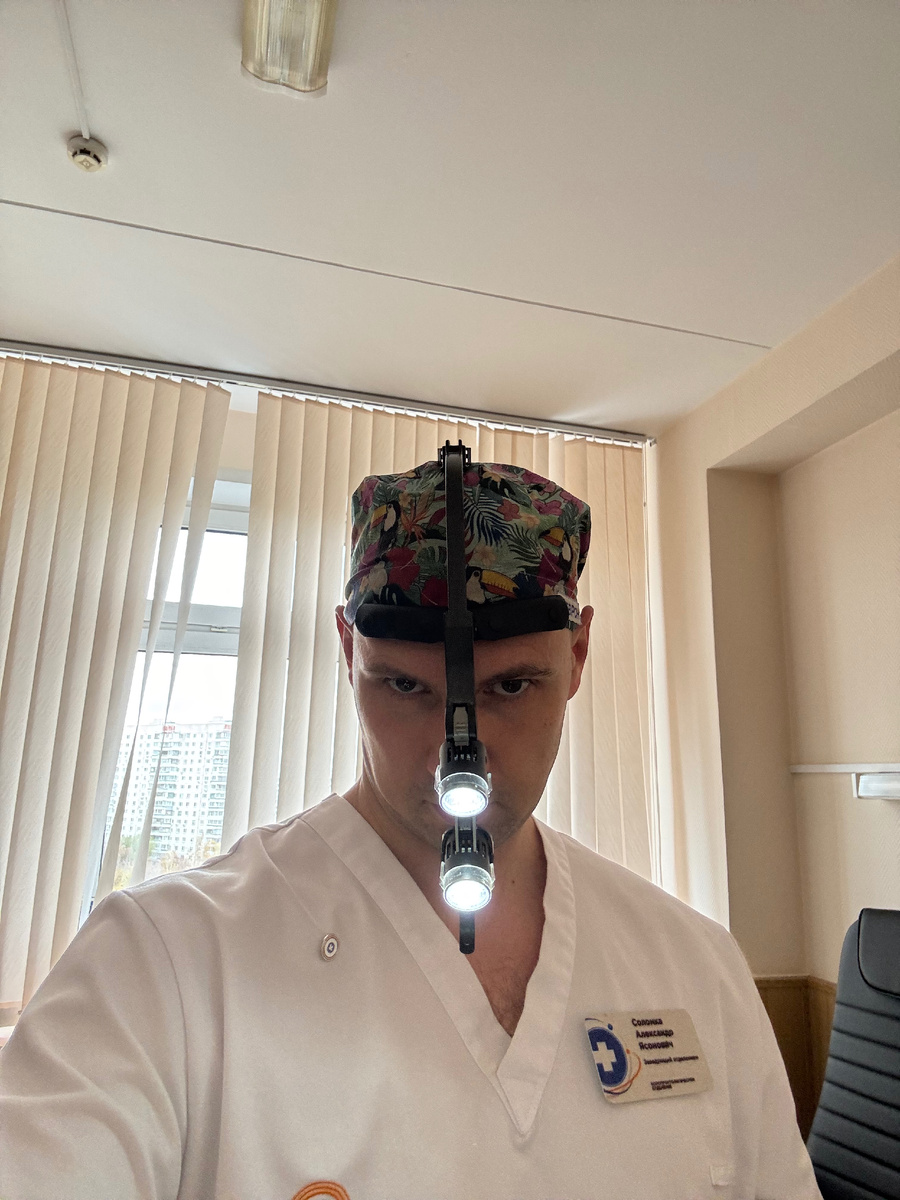 Пожалуй один из самых универсальных и нужных инструментов проктолога – это источник света. За свою практику я перепробовал достаточно много вариантов налобного освещения, в том числе и дорогие немецкие приборы. Однако ни один из них по удобству использования и рядом не стоял с бестеневым налобным осветителем Dr.Kim.