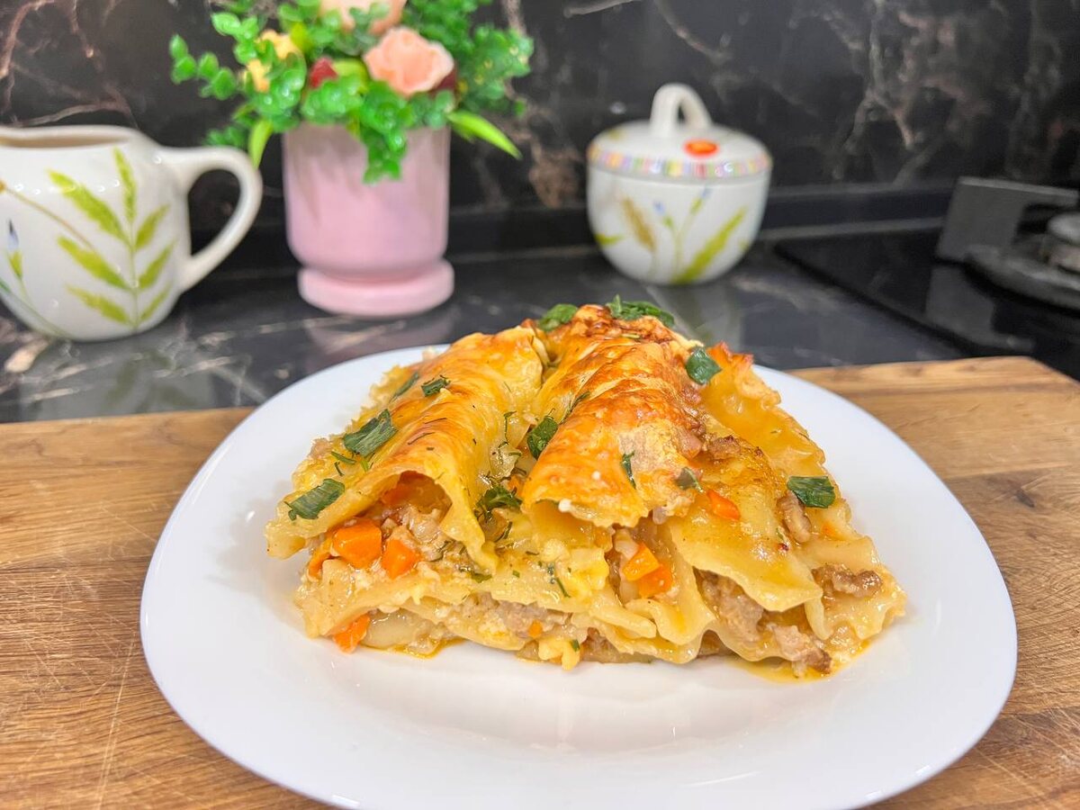 Всем привет! Сегодня предлагаю приготовить очень вкусный и сытный ужин — лазанью. Ингредиенты: - Морковь — 1 шт. - Репчатый лук — 1 шт. - Растительное масло — для обжаривания - Фарш мясной (говяжий или свино-говяжий) — 500 г - Томатный соус — 200 мл - Листья лазаньи — около 10 штук - Молоко — 500 мл - Мука пшеничная — 3 ст.л. - Масло сливочное — 50 г - Сыр твёрдый (лучше пармезан) — 150 г - Соль, черный молотый перец — по вкусу ⎯⎯⎯⎯⎯⎯⎯⎯⎯⎯ Приготовление: 1. Морковку и лук очищаю и режу мелкими кубиками. Отправляю овощи на сковороду с растительным маслом и обжариваю на среднем огне до мягкости и лёгкого золотистого оттенка. 2. Добавляю фарш и продолжаю тушить всё вместе около 15-20 минут, периодически помешивая. Солю и перчу по вкусу. 3. Когда мясо почти готово, вливаю томатный соус, перемешиваю и оставляю готовиться под крышкой ещё минуты 10-15. Это наша начинка болоньезе готова! 4. Теперь займусь соусом бешамель. На сухой чистой сковороде растапливаю сливочное масло, всыпаю муку и бы