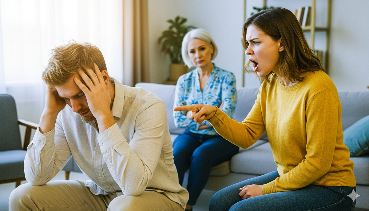 Однажды вечером всё дошло до предела. Виктор и Нина Григорьевна устроили очередной разговор. Муж ходил по комнате, доказывая, что без кредита всё рухнет. Свекровь сидела, вытирая слёзы, и причитала о своей тяжёлой судьбе.
