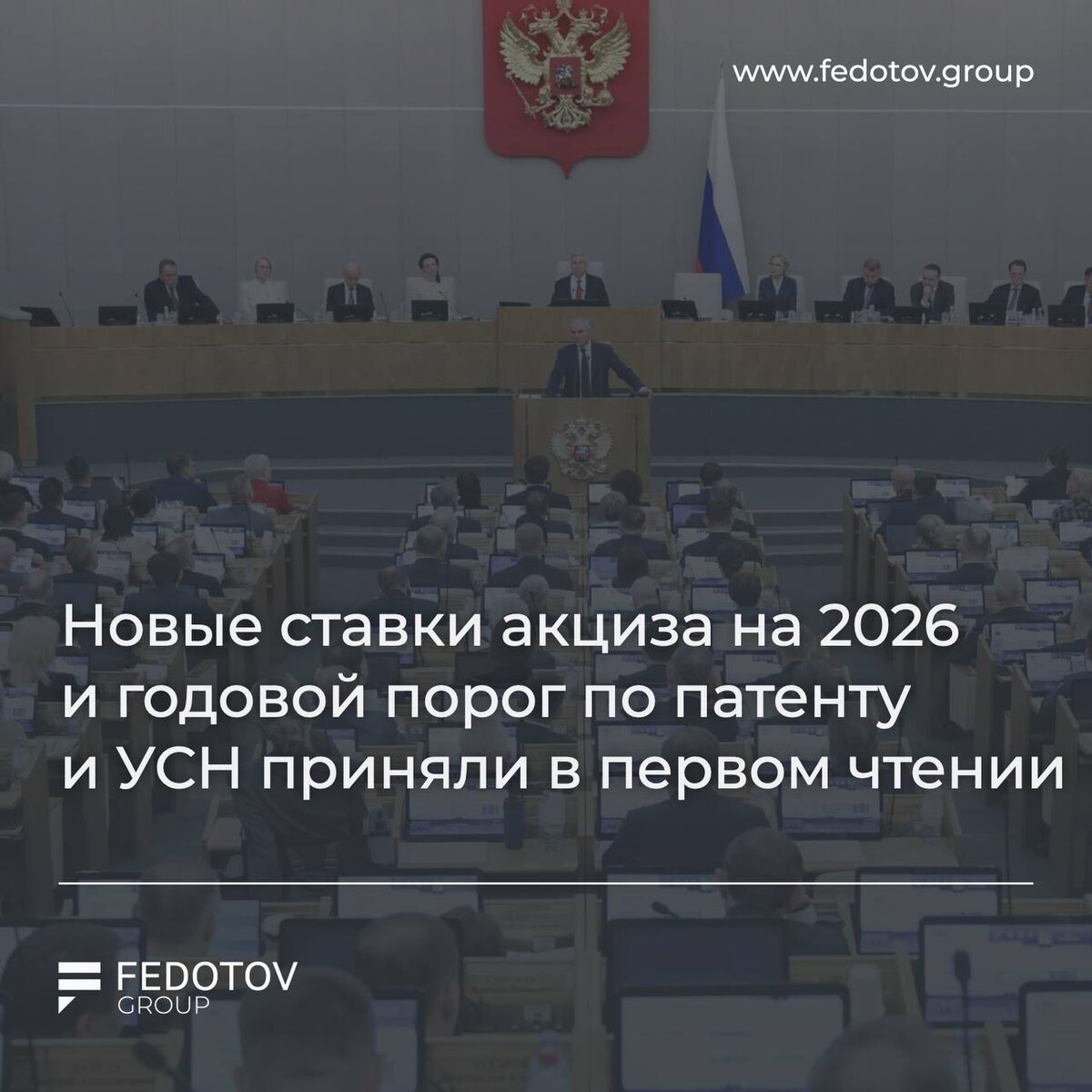 Новые ставки акциза на 2026 и годовой порог по патенту и УСН приняли в первом чтении Сегодня в Госдуме прошло первое чтение поправок в Налоговый кодекс. Среди принятых решений — два ключевых изменения, которые касаются рынка табачной и никотинсодержащей продукции: 1. Новые ставки акциза на табачную и никотинсодержащую продукцию на 2026 год. Все ставки акциза мы уже показали здесь. 2. Снижение годового порога доходов для УСН и патента с 60 до 10 млн рублей. Рассказывали об этом в посте тут. Михаил Мишустин дал поручение Министерству финансов проработать предложения, в том числе идеи деловых объединений, по решению ряда налоговых вопросов – Вячеслав Володин Это значит, что есть шанс корректировки текущих параметров законопроекта. Впереди еще два чтения, рассмотрение Советом Федерации и подпись Президента. Следим за новостями. А ознакомиться с законопроектом вы можете по ссылке. Получить консультацию | Билеты на REG | Дать буст | Попасть в Retail Expert