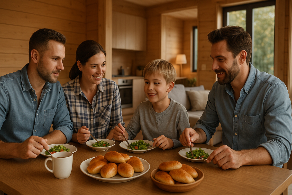 Кухня-гостиная — это не просто модный тренд, а настоящее сердце загородного дома. Место, где семья собирается вместе, делится новостями дня и создает самые теплые воспоминания. Почему кухня-гостиная — душа вашего дома: Преимущества в каркасном доме: — Свободная планировка: каркасная технология позволяет создавать открытые пространства без несущих стен внутри — Панорамные окна: легкие конструкции выдерживают большое остекление — вид на природу из кухни-гостиной — Теплый пол по всей площади: равномерное отопление делает комфортным каждый уголок — можно валяться на полу с книгой Ваша идеальная кухня-гостиная: В Urman Build (Урман Билд) мы создаем пространства для жизни: — Индивидуальная планировка под ваш образ жизни — Зонирование без лишних перегородок — Максимум света и воздуха Спроектируем кухню-гостиную, которая станет любимым местом всей семьи!