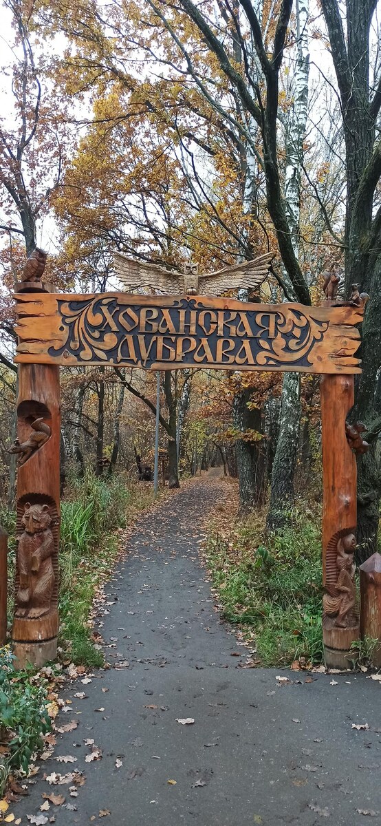 Приехала к детям в Москву, они живут довольно далеко от центра, в Новой Москве, и я нашла там отличное место для прогулок- парк "Хованская Дубрава". Парк мне понравился- ухоженный, чистый! Деревья в парке растут густо- предполагаю в прошлом натуральный лес. Пик золотой осени прошёл, но всё же было очень красиво. Пасмурная погода и изморозь- на настроение не влияют. Скамейки - удобные, даже урна для мусора является ярким элементом ландшафта. Фото довольно тёмные- это было 7 утра, да и в целом погода пасмурная.Но в этом и прелесть прогулки в пустом парке- тишина, листва под ногами - люблю когда шуршит, но было сыро. И запах - леса, травы и осени ... Я пошла выгуливать Ози- это питомец моей дочки. У меня , кстати никогда не было собак, поэтому выгуливать -это новый опыт для меня. Порода? Когда покупали был аусси - австралийская овчарка . Я решила спросить чат GPT и вот что он мне ответил: "По внешним признакам собака похожа на метиса, но в ней могут быть черты таких пород, как: Бордер-кол