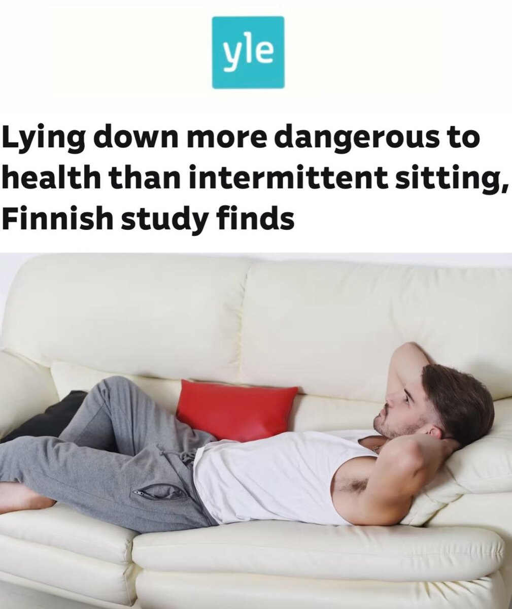🪑 Учёные: сидеть полезнее, чем лежать! Финские исследователи неожиданно выяснили: проводить время сидя может быть полезнее для здоровья, чем лежа. Долгое пребывание в горизонтальном положении оказалось опасным для сердца и обмена веществ. 👎 Почему вредно долго лежать: Продолжительный отдых лёжа способствует увеличению окружности талии, повышению уровня «плохого» холестерина и снижению «хорошего». Даже если вставать каждые полчаса — негативный эффект полностью не исчезает. 👍 Почему сидеть полезнее: Короткие периоды сидения, чередующиеся с ходьбой каждые 20–30 минут, наоборот, улучшают метаболизм, повышают уровень «хорошего» холестерина и помогают сердцу работать стабильнее. Когда вы встаёте со стула, мышцы активируются, и обмен веществ ускоряется — это настоящий бонус для сосудов. 💡 Совет врачей: Если ваша работа связана с длительным сидением — вставайте, разминайтесь, пройдитесь хотя бы пару минут. Такой режим активного отдыха гораздо полезнее, чем «восстановление» лёжа на дива