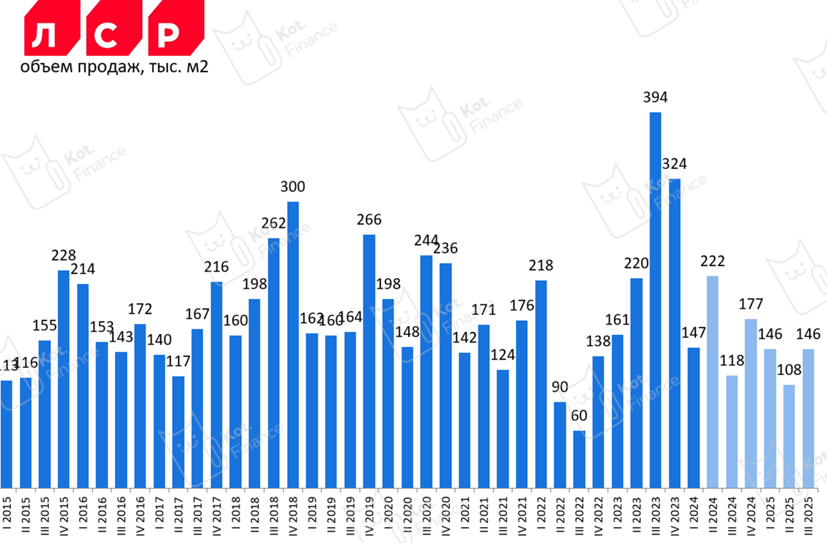 👉Знакомство со строителями ✈️САМОЛЕТ BIG DICK (зачеркнуто) DAY 2024 Несмотря на то, что все эксперты пророчили коллапс рынка после отмены классической льготной ипотеки, отчеты по продажам говорят, что это не так. LTM продажи снизились в 2 раза относительно раздутых периодов льготной, но сравнивая с 2021-2022 годами – всё достойно. И это в квадратных метрах Квартально результаты хороши (на слайде бледным цветом выделен период после отмены льгот) и сильного спада не отмечено Другие наши обзоры строителей: 👉Эталон 👉Glorax 👉Самолет В деньгах цифры еще лучше: 150 млрд. руб. за последние 12 месяцев это лучше любого периода до 2023 года. Внимательный читатель справедливо спросит: это продажи в деньги, или рассрочка. К сожалению, такой детализации в раскрытии нет. Безусловно, в продажах есть рассрочка, но неизвестна доля. Сама рассрочка пока опасений не вызывает. Она всегда с высоким перв