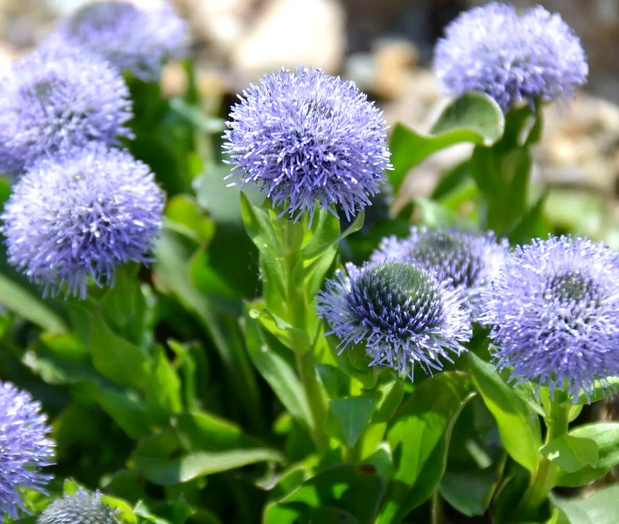 Альпийские горки и рокарии: Идеально вписывается в каменистые сады, где ее нежные голубые шарики контрастируют с грубыми камнями.