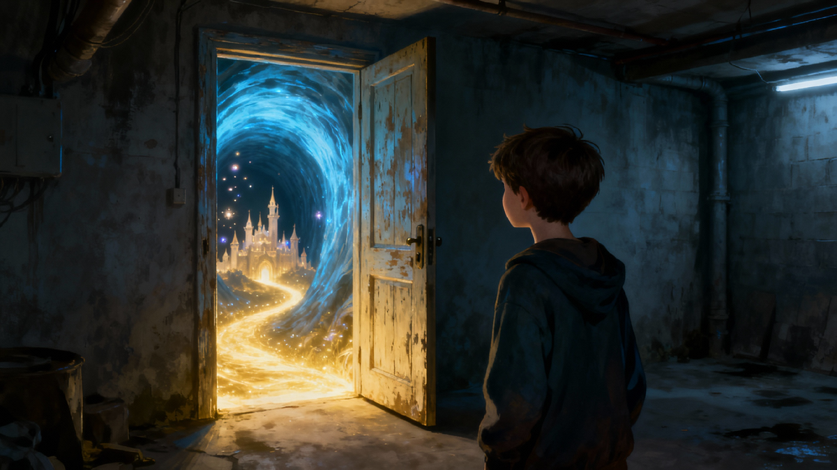 Однажды мальчик Саша играл в своём доме и случайно нашёл старую дверь в подвале. Она была спрятана за стеллажом и покрыта пылью, словно никто не открывал её много много лет. Любопытство взяло верх, и Саша осторожно открыл дверь. За ней оказалось не просто помещение, а яркий, сверкающий туннель, который вел в удивительное место. Когда Саша прошел по туннелю вперёд, то очутился в настоящем Королевстве игрушек! Повсюду были домики из кубиков, деревья из конструктора, дороги из пазлов, а воздух звенел весёлым смехом. Но самое удивительное было то, что все игрушки здесь оживали, стоило им попасть в это волшебное место. — Добро пожаловать, Саша! — пропищала маленькая заводная мышка, подпрыгивая рядом. — У нас здесь всё оживает, стоит попасть через волшебную дверь! Саша был в восторге, он тотчас побежал домой за своими любимыми игрушкам. Он принес из дома: плюшевого Мишку, деревянного солдатика и машинку. Как только он поставил их на землю, они тотчас ожили! Мишка потянулся и сказал басом: —
