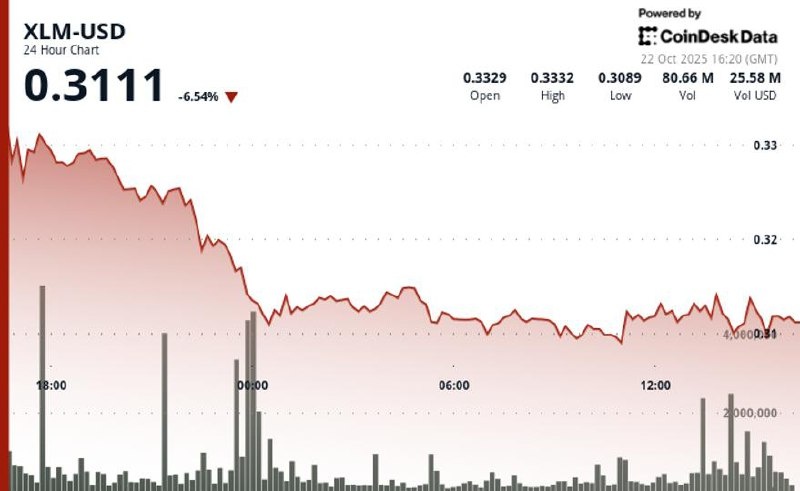 Stellar падает на 5%, Пробив уровень Поддержки ниже $0,32 Техническое давление со стороны продавцов усиливается, поскольку XLM пробивает ключевую поддержку на фоне роста объема на 74% выше среднего. 📢 Подписаться на канал • 🔗 Источник