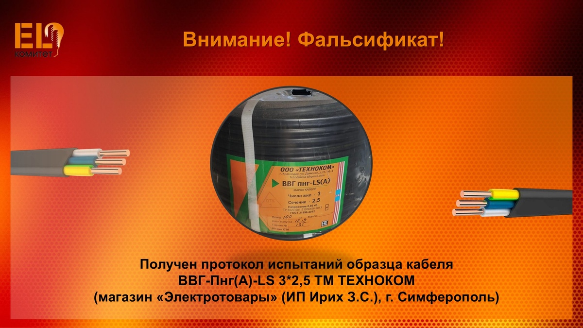 EL-Комитетом НОПСМ получены результаты испытаний образца кабеля ВВГ-Пнг(А)-LS 3*2,5 ТМ ТЕХНОКОМ (производитель ООО «Техноком», ИНН 2308256305), закупленного в магазине «Электротовары» (ИП Ирих З.С.) в г. Симферополе. ❌ В отобранном образце выявлены существенные отклонения от требований качества и безопасности ГОСТ 31996-2012 в части занижения толщины изоляции ТПЖ (до 14%). Образцы кабельной продукции ТМ ТЕХНОКОМ отбирались нашими специалистами в рамках мониторинга в течение 2022-2025 гг. в ряде крупных городов ЮФО 6 раз. Как показали результаты проведенных испытаний, во всех отобранных образцах были выявлены различные нарушения требований ГОСТ. В результате претензионно-судебной работы нам удалось пресечь реализацию кабельного фальсификата ТМ ТЕХНОКОМ в 3 розничных точках г. Краснодара, однако производитель вместо того, чтобы изменить подход к качеству выпускаемой продукции, «осваивает» новые ниши рынка, в т.ч. в Республике Крым. Напомним, ООО «Техноком» – небольшое «предприятие» (сред