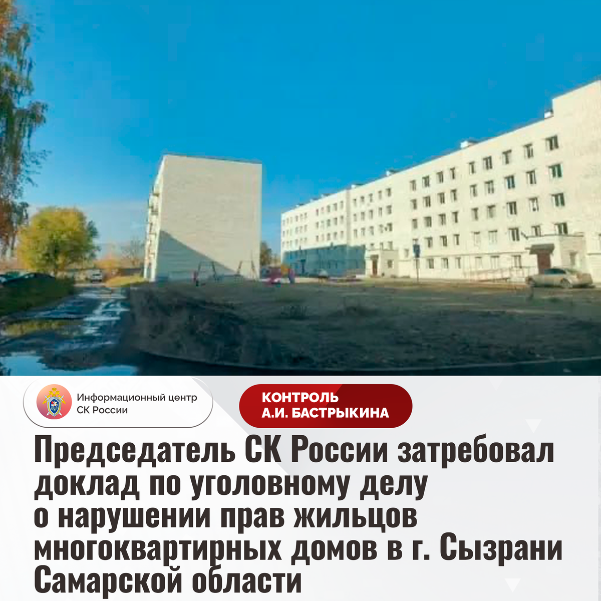 Председатель СК России затребовал доклад по уголовному делу о нарушении прав жильцов многоквартирных домов в г. Сызрани Самарской области В социальной сети сообщается о нарушении прав детей-сирот и переселенцев из аварийных домов в городе Сызрани Самарской области. В прошлом году гражданам льготных категорий выданы жилые помещения в многоквартирных домах на улице Керамической. Однако благоустройство придомовой территории не проведено: подъездная дорога разбита, детская площадка находится в непригодном состоянии и засыпана песком, который при ветре попадает в квартиры жильцов. Многочисленные обращения в компетентные органы результатов не принесли. В СУ СК России по Самарской области возбуждено уголовное дело. Председатель Следственного комитета Российской Федерации Александр Иванович Бастрыкин затребовал у руководителя СУ СК России по Самарской области Павла Михайловича Олейника доклад о предварительных и окончательных результатах расследования уголовного дела. Исполнение поручения пост