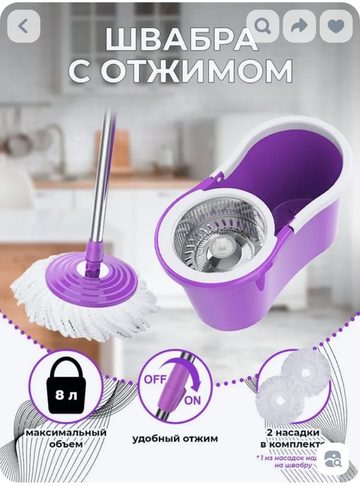 Ну, сначала, матом, конечно, пока собирала ее без инструкции. Потом оказалось, что и ручка короткая - спина болит, и мусор эта швабра не собирает, и прополаскивается плохо - вся волосня на ней остается. И ставить это ведро не-ку-да! Купила на свою голову.