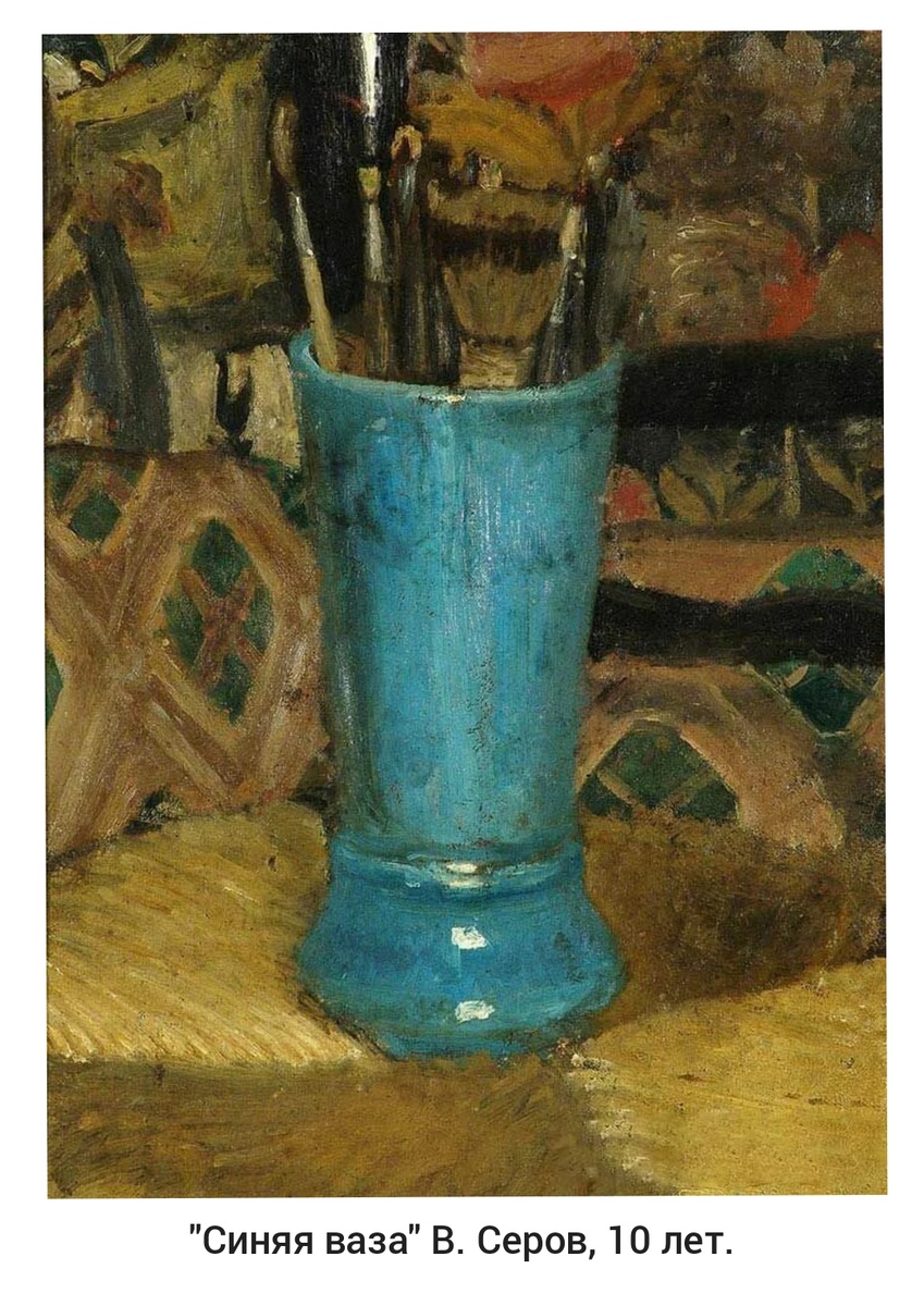 Среди русских художников, проявивших свой талант в раннем детстве, можно выделить несколько ярких примеров. Илья Репин (1844 - 1930) рисовать начал рано: впервые взял в руки краски, когда ему не было и семи лет. Сначала рисовал розы для сундуков местных барышень, потом расписывал пасхальные яйца — «писанки». Когда Илье Репину было 11 лет, его отправили в школу топографов — в Чугуеве (где он жил) была востребована эта специальность. Там тушью и акварелью он рисовал карты. Но проучился там только два года — школу закрыли. Он устроился подмастерьем в иконописную мастерскую к представителю художественной династии, мастеру Ивану Бунакову. Талант юного ученика быстро заметили: в 16 лет Репин уже уехал работать с кочевой артелью иконописцев. Спустя несколько лет молодой художник решил отправиться в Санкт-Петербург — учиться живописи. Валентин Серов(1865 - 1911) также проявил себя как художник в юном возрасте. Педагогом юного Серова стал Илья Репин. Сначала они занимались в Париже, а по