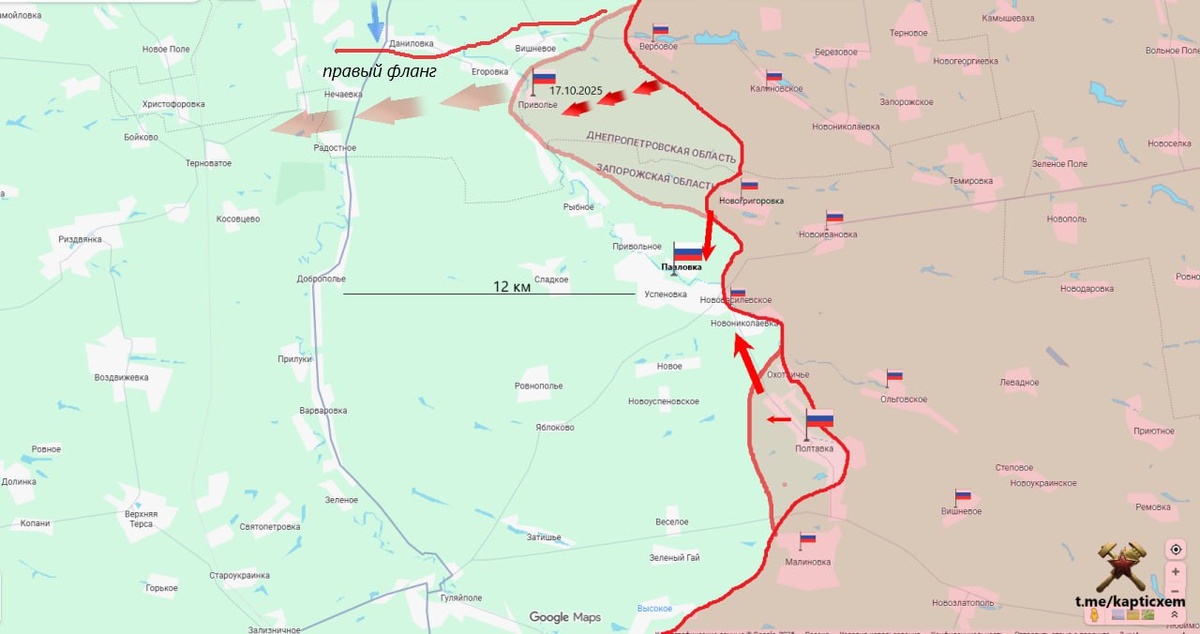 То есть пока, на первом этапе, планируется в самом простом сценарии "Плана А" фиксация правого фланга по Даниловке. Естественно при нашем контроле Вишневого, в которое мы уже зашли, и Егоровки.