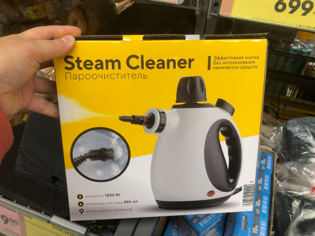В продаже есть пароочиститель. Мощность 1050 Вт. Объем резервуара 330 мл. 9 аксессуаров в комплекте.
