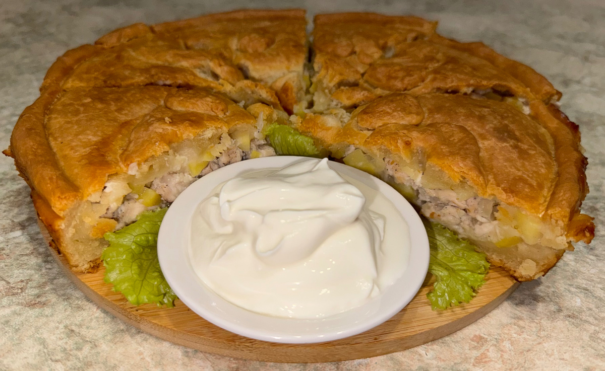 Курник - это очень сытный пирог с курицей и картофелем. Классический курник - это закрытый пирог с дырочкой, внутри сочная начинка. Ароматный пирог нравится и взрослым и детям, добавку уж точно попросят! Вот классический рецепт пирога курника: Ингредиенты: Для теста: Для начинки: Приготовление: 1. Приготовьте тесто: растопите сливочное масло, добавьте кефир, соль, разрыхлитель и муку. Замесите мягкое эластичное тесто. Разделите пополам, от одной половины отрежьте кусочек для декора. 2. Для начинки: картофель помыть, почистить, мелко нарезать кубиком. Куриное филе промыть, обсушить, мелко нарезать. Лук очистить и мелко нарезать. Посолите, поперчите, перемешайте. 3. Раскатайте часть теста и выложите в форму, сформировав бортики. Выложите начинку. Сверху накройте оставшимся тестом, защипните края и сделайте несколько отверстий для выхода пара. Положите кусочки сливочного масла. Украсьте по желанию. Смажьте пирог смесью молока и растительного масла. 4. Выпекайте в разогрето
