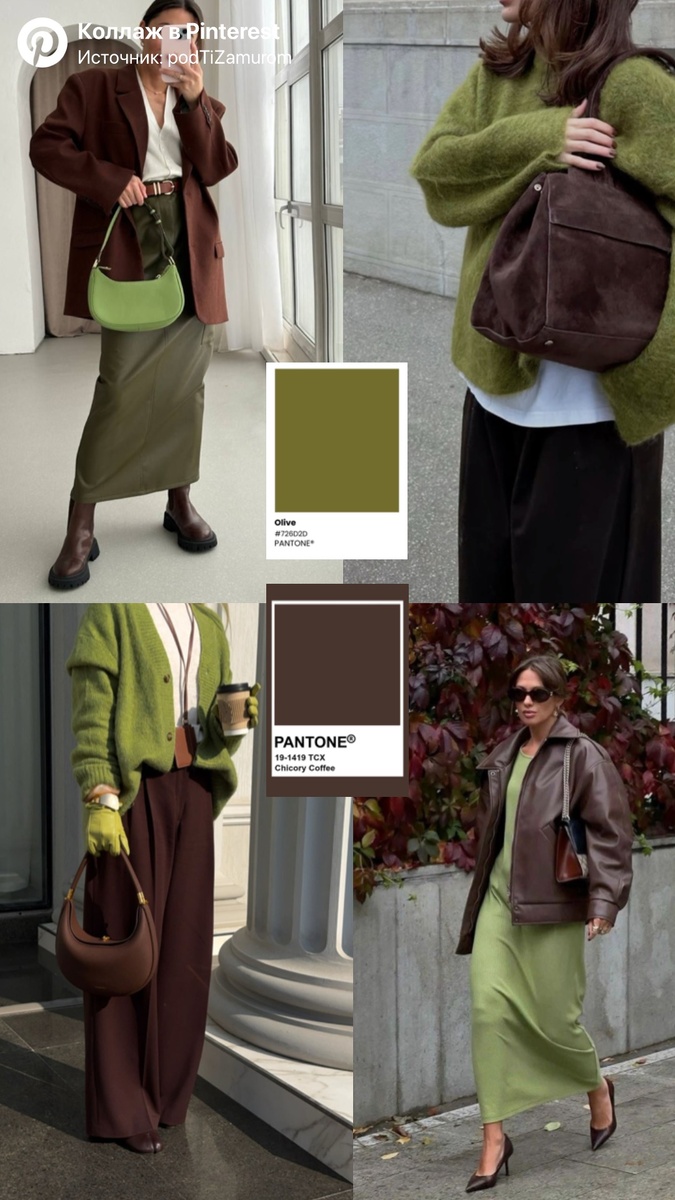 🍁 Цвет как язык осени: лучшие сочетания в образах на сезон 2025 Осень — это не просто время года, а эмоциональное состояние. В 2025 году мода предлагает нам говорить на языке цвета: выразительно, но сдержанно, насыщенно, но утончённо. Цветовые сочетания становятся не просто стилистическим приёмом, а способом самовыражения, отражающим внутренний мир, настроение и даже философию жизни. Современные тренды всё чаще обращаются к психологии цвета. Осенью 2025 года дизайнеры и стилисты делают ставку на дуэты, которые вызывают ассоциации с теплом, уютом, интеллектуальностью и глубиной. Это не кричащие контрасты, а сложные, многослойные пары, в которых каждый оттенок раскрывается по-новому. Ассоциации: лес, тепло, зрелость Где использовать: пальто, трикотаж, аксессуары Это сочетание словно приглашает на прогулку по осеннему парку. Фисташковый — свежий, но не холодный, а шоколадный — уютный и насыщенный. Вместе они создают образ, в котором хочется завернуться, как в плед. Особенно хорошо работ
