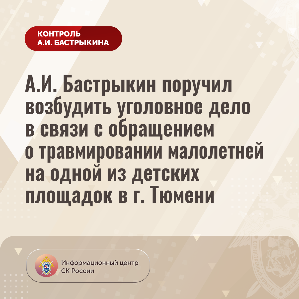 А.И. Бастрыкин поручил возбудить уголовное дело в связи с обращением о травмировании малолетней на одной из детских площадок в г. Тюмени