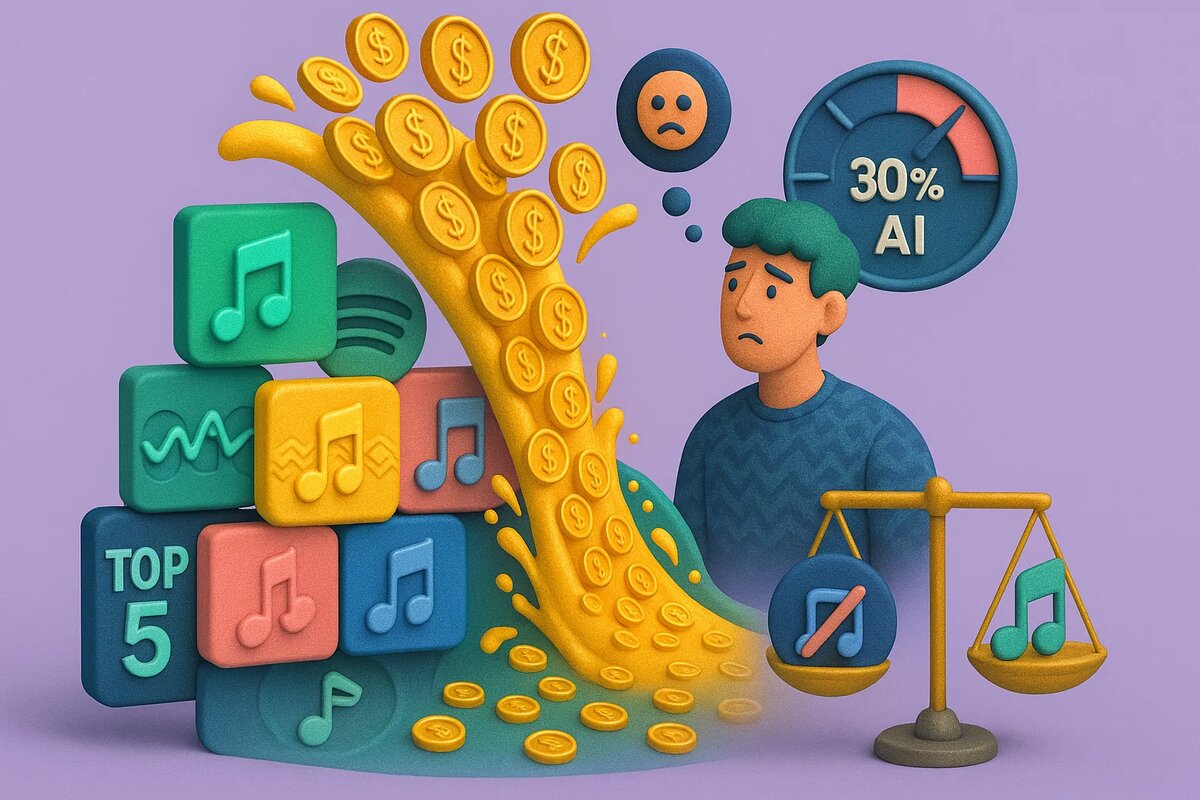 ИИ-музыка продолжает захватывать стриминговые платформы, принося своим «создателям» доход, превышающий заработок многих реальных музыкантов. Пока 75% продюсеров опасаются, что ИИ скоро заменит людей, статистика показывает, что это уже происходит. По данным Deezer, почти треть новых треков, загружаемых на платформу ежедневно, создана с помощью ИИ.