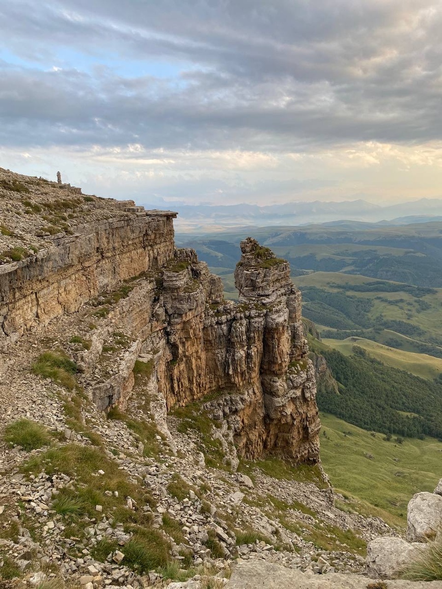 Бермамыт - горный массив в Карачаево-Черкессии, представляющий из себя плато с отвесными скальными стенами. Возвышается более чем на 2600 метров. А в ясную погоду открываются шикарные панорамы на Кавказский хребет и Эльбрус. Это место называют «Балконом Кавказа», и оно по праву считается одним из самых красивых видовых мест в мире. Находится километрах в 60 от Кисловодска по дороге на Джилы-су, но сворачиваем почти в самом начале. По пути заехали подкрепиться, говорят, это легендарное место, в котором готовят самые вкусные хычины. (я чуть позже разберу всю кавказскую выпечку, которую мы успели попробовать), и говорю как есть, это не вкусно, это шикарно! Мы взяли джип-тур, чтобы встретить закат на плато. И наверное все-таки лучше ехать с гидом, который как минимум знает дорогу, а как максимум - сбережет твою машину, взяв весь удар на себя. Плюсом можно покрутить головой во все стороны, а смотреть есть что! Бескрайние пастбища, по которым бежит табун лошадей. Одинокие, будто забытые во