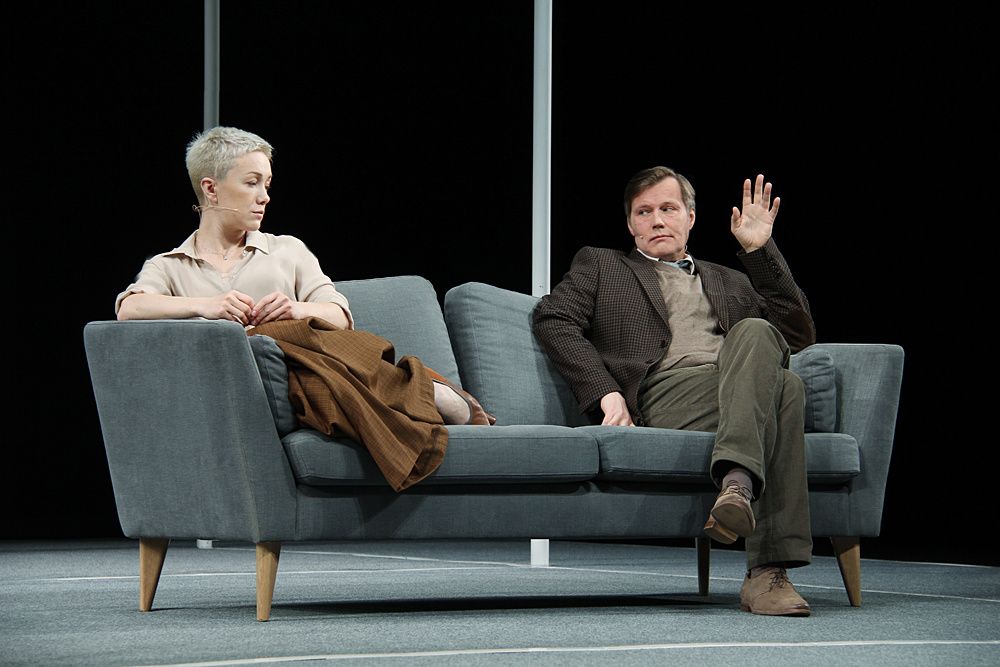 Посетил спектакль Мужья и жены в МХТ имени Чехова. Режиссер Константин Богомолов по пьесе Вуди Аллена. Премьера спектакля состоялась в 2017 но до сих пор он собирает аншлаги. Я как всегда взял билет на балкон (галерка наше все, хожу в театр часто, поэтому билеты беру подешевле). В этот раз взял на последний ряд, передо мной проход. Так вот, за минуту до начала весь этот проход заполнился людьми, они на ступеньках сидели весь спектакль. Супераншлаг, ни одного свободного места. Очень хороший состав актеров. Декорации минималистичны. О чем спектакль? Название отражает суть происходящего на 100%. Две семейные пары дружат. Первая пара Гэйб (Игорь Гордин) и Джуди (Дарья Мороз) вторая пара - Джэк (Игорь Верник) и Салли (Александра Ребенок). В самом начале Джэк и Салли сообщают свои друзьям, что разводятся после 15 лет брака, чем повергают их в шок. Ведь со стороны все у них было отлично, никаких конфликтов, двое детей... Прекрасный диалог: Гейб говорит Джеку: - Вернись к Салли, она замеч