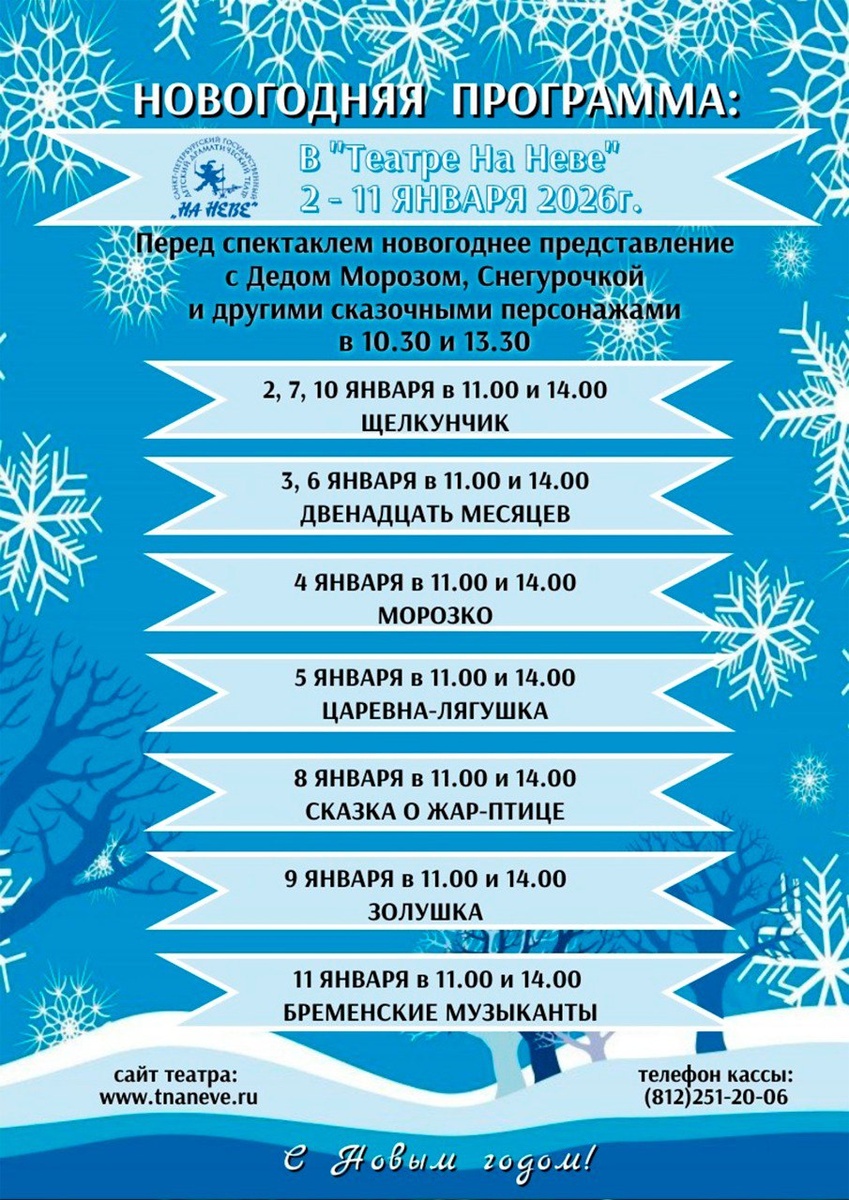 А вот репертуар на январь 2026 года. Новогодняя программа продлится все зимние каникулы! Билеты уже в продаже!