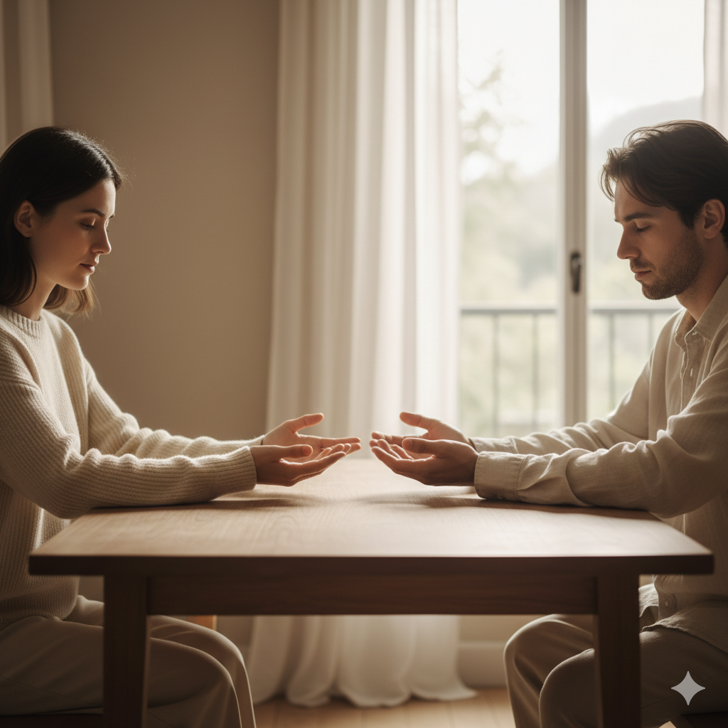 Эти три дня нужны, чтобы человек начал слышать себя. Чтобы боль постепенно стала не гулом, а мыслью, а мысль превратилась в чувство, которое можно выразить. Когда пара приходит, внутри каждого уже идёт движение — напряжённое, ещё необработанное, но живое. Моё простр