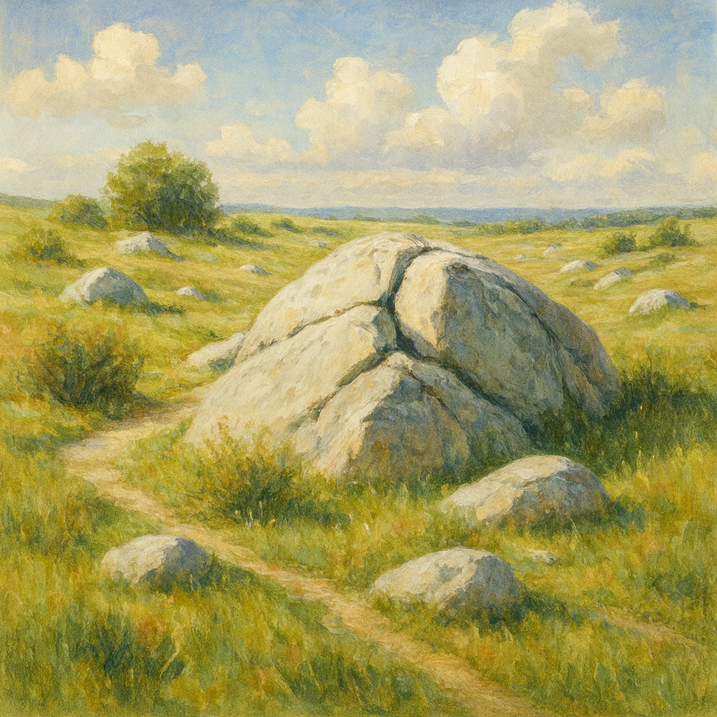 Пройдя несколько шагов, Макар вышел на широкую поляну и увидел каменные валуны. Маленькие камешки лежали группкой во главе с одним большим валуном, будто детский сад вышел на прогулку. Большие валуны держались по двое-трое, словно наблюдая за малышнëй издалека. Создавалось впечатление, что дед попал не на полянку с камнями, а в парк, где гуляют семьями. Просто люди каменные.
