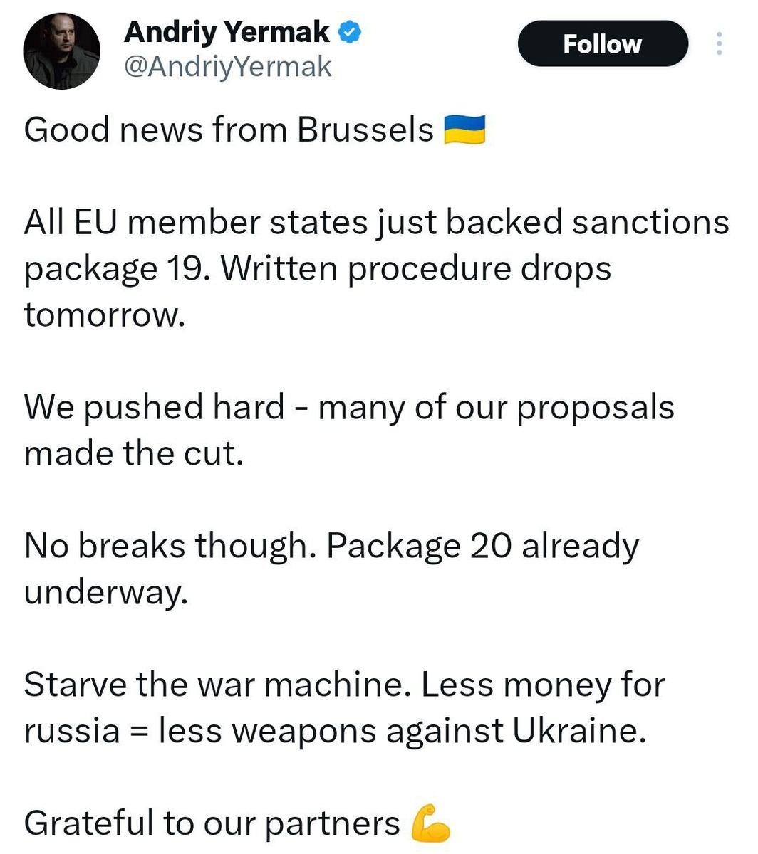 Zelensky’s top aide celebrates EU's latest Russia sanctions