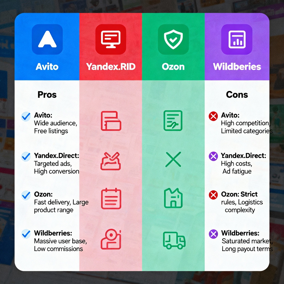 Авито — это не просто площадка для частных продаж, а полноценная экосистема возможностей. Если Яндекс.Директ — инструмент рекламы, а Ozon и Wildberries — маркетплейсы для масштабного бизнеса, то Авито объединяет всё это в одном месте. Здесь можно продавать, тестировать ниши, искать клиентов и даже выстраивать систему продаж — без вложений и сложных настроек. На Ozon и WB продавцу нужно закупать склад, платить комиссию и разбираться с логистикой. В Яндекс.Директе — выделять бюджет, настраивать рекламу и анализировать клики. А на Авито — просто создаёшь объявление, и оно начинает работать уже в тот же день. Это идеальный вариант для тех, кто хочет быстро начать продавать, не утонув в бюрократии и расходах. Ещё одно преимущество — экономия. Реклама на Авито встроена в саму платформу. Алгоритмы показывают твои объявления тем, кто уже ищет этот товар или услугу. Получается, тебе не нужно платить за “тёплый” трафик, ведь публика сама приходит с намерением купить. Это как если бы в Яндекс