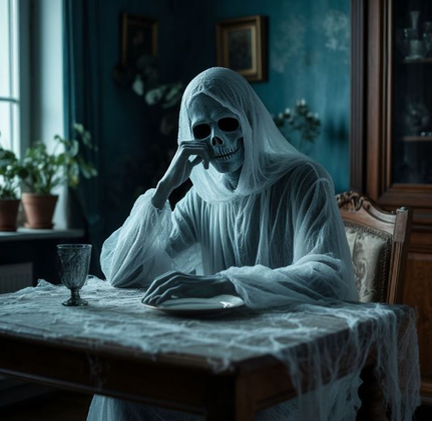Тогда я пошёл на отчаянный шаг. Подкуп. Что можно предложить призраку? Молоко? Червонец? Я поставил тарелку и положил на нее два бутерброда, поставил в угол и прошептал: «Вот, Степан Петрович, подкрепись. Только, пожалуйста, отстань». Эффект был мгновенным. Лампочка на кухне ярко вспыхнула и с треском перегорела. Похоже, я его оскорбил. Отчаяние достигло пика. Я вернулся в комнату и с порога заявил: Катя, ты не поверишь, но у меня тут призрак-зануда. Он ненавидит беспорядок. И твой смех.