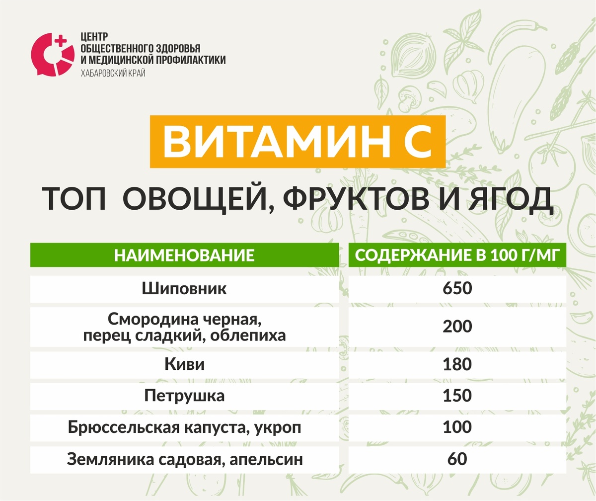 В организме витамин С не вырабатывается — человек получает его только с пищей: овощами, фруктами, зеленью, ягодами. Является одним из основных веществ в человеческом рационе, которое необходимо для нормального функционирования соединительной и костной ткани. 👍Топ по содержанию Витамина С! ✅Сохраняй, чтобы не потерять! Только достоверная информация о здоровом образе жизни от центра общественного здоровья! @cmp_dv