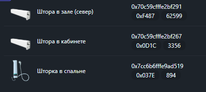 Итак, переезд потихоньку продолжается. В новой квартире много окон и они большие, как в аквариуме находишься... Да и этаж первый... Именно поэтому были заказаны электрокарнизы. Дабы не тянуть лепиздричество к моторам, были приобретены аккумуляторные (уже упоминал в другой статье) - работают от одного заряда до 6 месяцев, заряжаются от USB Type-C. Управляются как с пульта, так и по ZigBee. Пока установил только один карниз в будущей спальне, чтобы пройти все моменты установки и настройки на нем, дабы не косячить с остальными четырьмя. В режим сопряжения мотор входит после трех последовательных коротких нажатий на маленькую кнопочку на моторе. В-итоге, устройство появляется в списке. Не знаю почему один из моторов с картинкой проводного... Но он отличается от четырех других в реалии - производитель другой... Посмотрел варианты управления шторами визуально и решил установить карточку pic-shutter-card. Карточка отображает текущее положение шторы, позволяет управлять её положением и имеет п