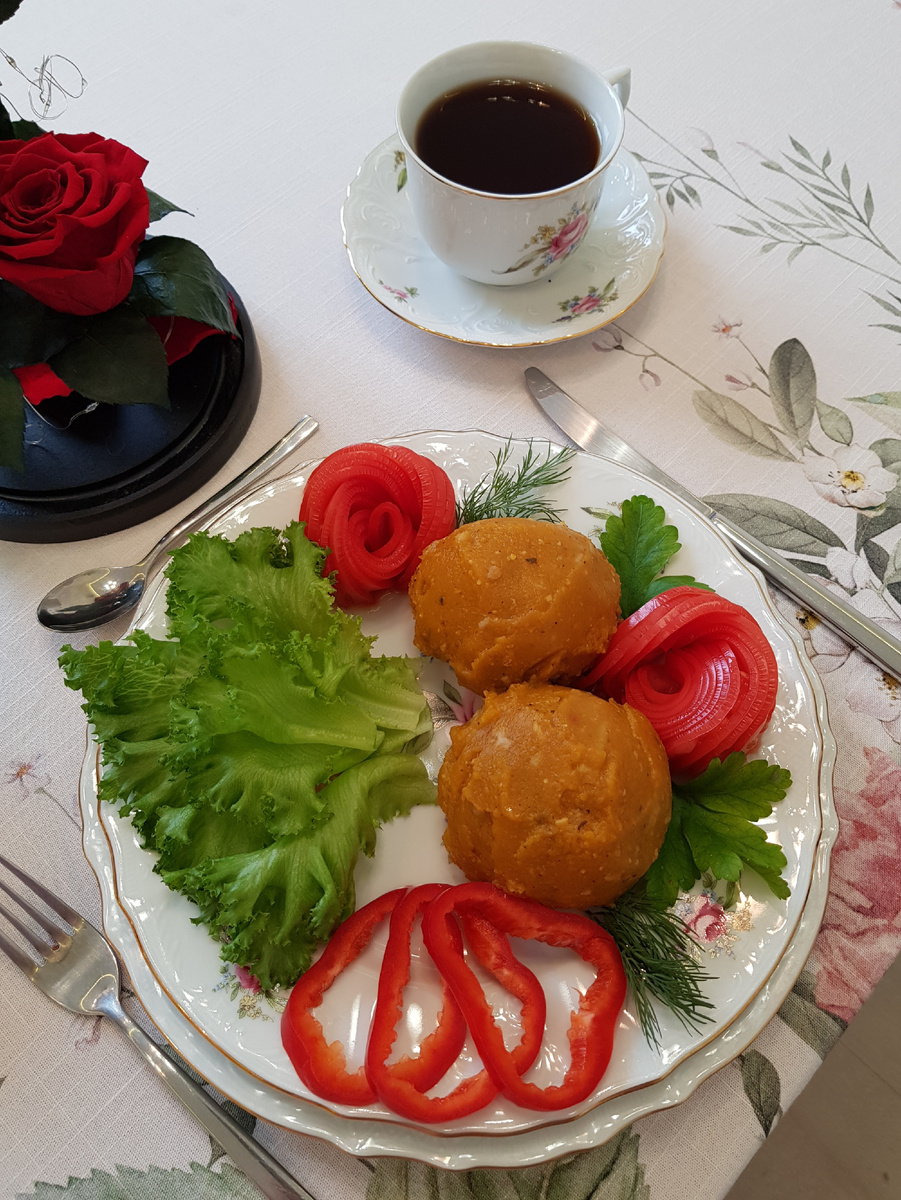 Добрый день, дорогие друзья! Сегодня я представляю вашему вниманию осеннее блюдо, состоящее из мясных тефтелей, запеченных в тыквенном пюре. Благодаря такому сочетанию тыква пропитывается мясным бульоном, а мясные тефтели становятся нежными и сочными. Для приготовления 6 порций нам понадобятся: 1150 грамм фарша говядина/свинина, 200 грамм репчатого лука, 140 грамм риса басмати, 500 грамм очищенной мускатной тыквы, 2 чайные ложки соли, 2 чайные ложки сушеного чеснока, 2/5 чайной ложки куркумы, 2/5 чайной ложки черного молотого перца, 2 чайные ложки приправы прованские травы, 2/5 чайной ложки молотой корицы, 200 грамм кипятка для приготовления риса, 500 грамм кипятка для тыквенного пюре. Приготовление: рис промыть до прозрачности, залить кипятком, посолить и отварить до полуготовности в течение 7 минут. Отваренный рис остудить и слить лишнюю воду при необходимости. В мясной фарш добавить измельченный лук, отварной рис, черный перец, 1 чайную ложку приправы «Прованские травы», 1,5 чайн